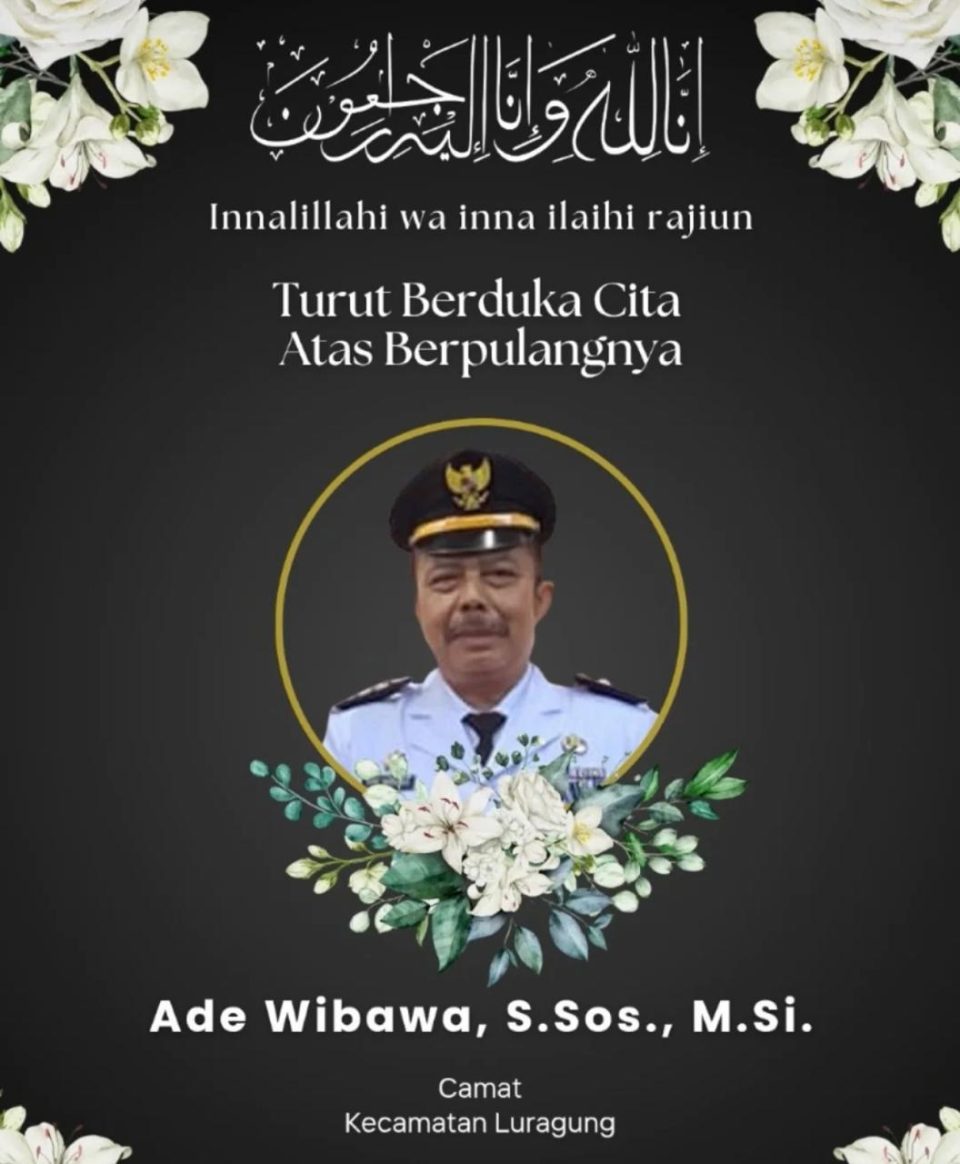LIPUTAN KUNINGAN- Kabar duka ramai di sebar di akun medsos pada Selasa (21/10/2025) sore pukul 16.41 , dimana Camat Luragung Ade Wibawa SSos MSi meninggal dunia. Kabar ini sontak membuat banyak pihak yang kenal kaget, karena mantan Camat Karangkancana tidak dikabarkan sakit.
