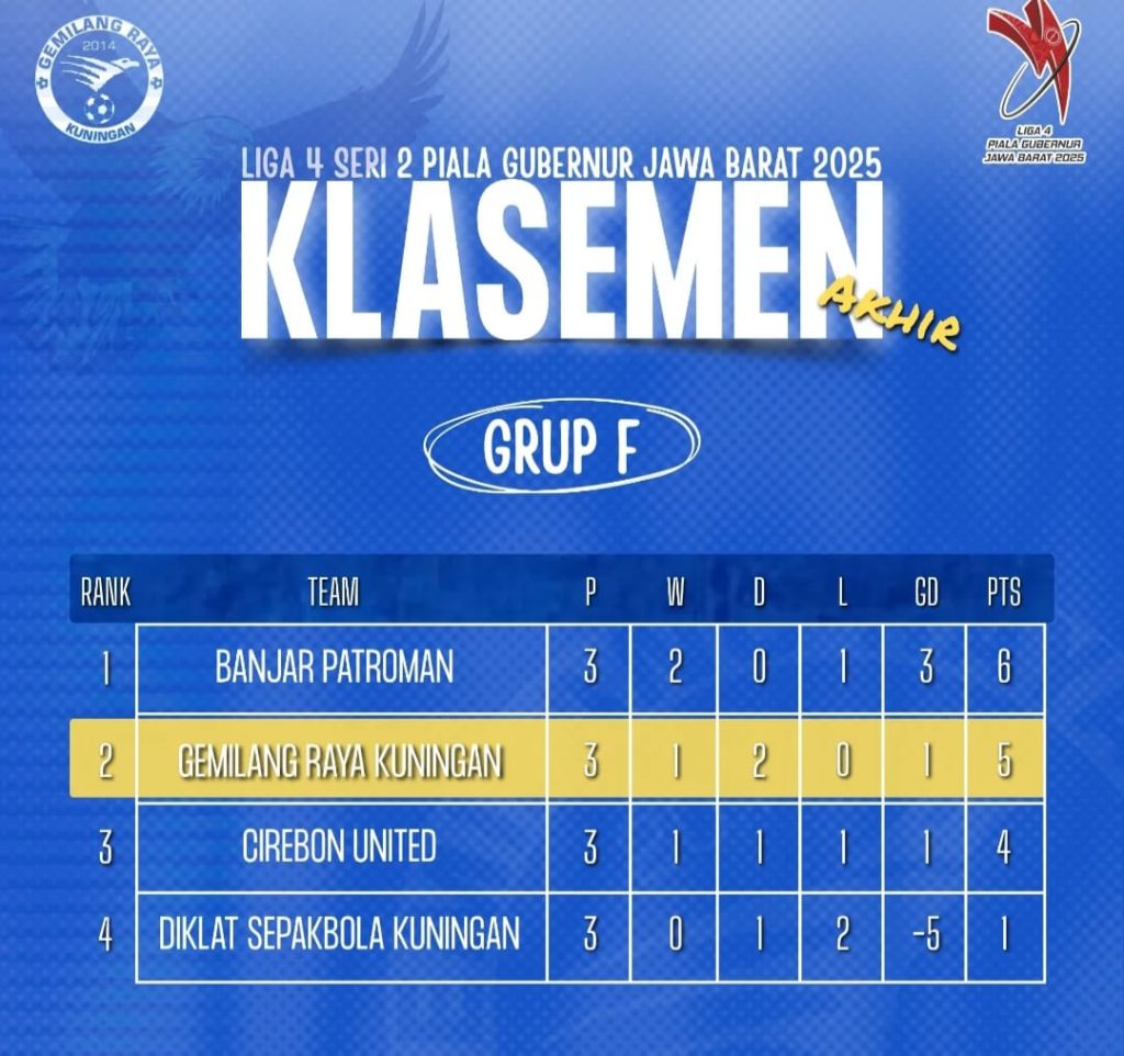 LIPUTAN KUNINGAN- Gemilang Raya menyelamatkan muka Kanbupaten Kuningan usai lolos ke babak 24 besar iga 4 Seri 2 Piala Gubernur Jabar 2025. Pada laga terakhir Rabu (29/10/2025) di grup F, Marsel Cs menahan tim Cirebon United dengan skor 1-1.