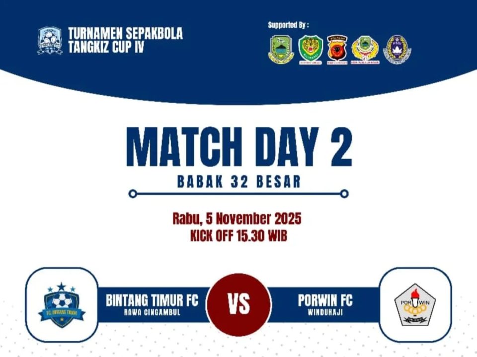 LIPUTAN KUNINGAN– Turnamen Open Sepakbola Tangkiz Cup 2025 akan memainkan laga kedua, dimana Bintang Timur FC Rawa  Cikijing MajalengkaVs Porwin FC Winduhaji akan berlangsung pada Rabu  (5/11/2025) pagi pukul 15.30 WIB  di lapangan Desa Kramatwangi Kecamatan Garawangi.