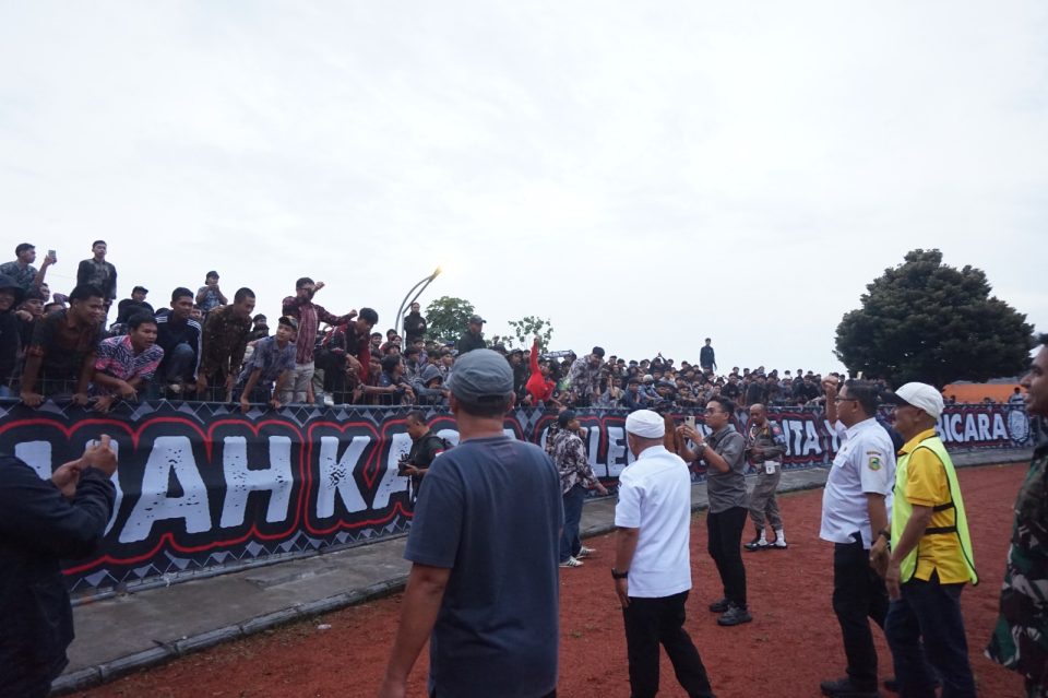 LIPUTAN KUNINGAN– Penjabat (Pj) Sekda Kuningan Dr Wahyu Hidayah yang ikut menyaksikan kemenangan Pesik Kuningan atas Persindra Indramayu pada Rabu (5/11/2025) sore pukul 15.30 WIB dengan skor 1-0.