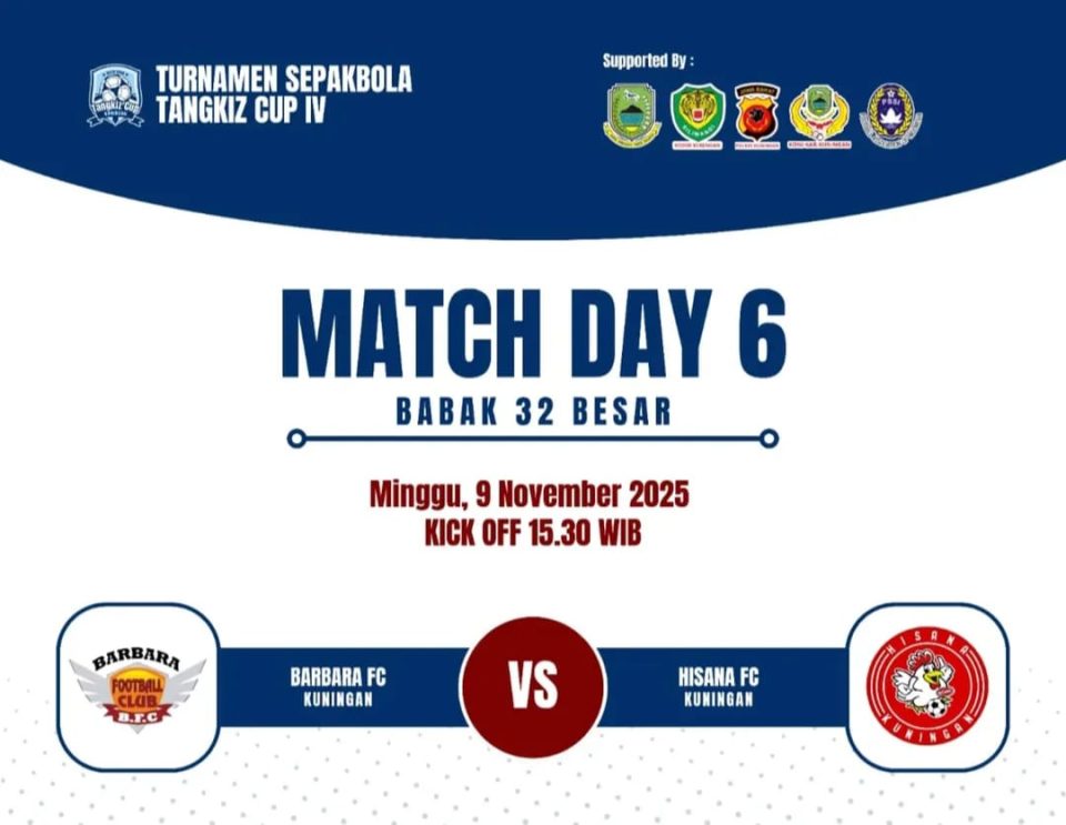 LIPUTAN KUNINGAN – Tidak terasa  urnamen Open Sepakbola Tangkiz Cup 2025 sudah memasuki hari ke-6. Pada laga hari Minggu (9/11/2025) bakal mempertemukan Barbara FC Kuningan Vs Hisana FC.