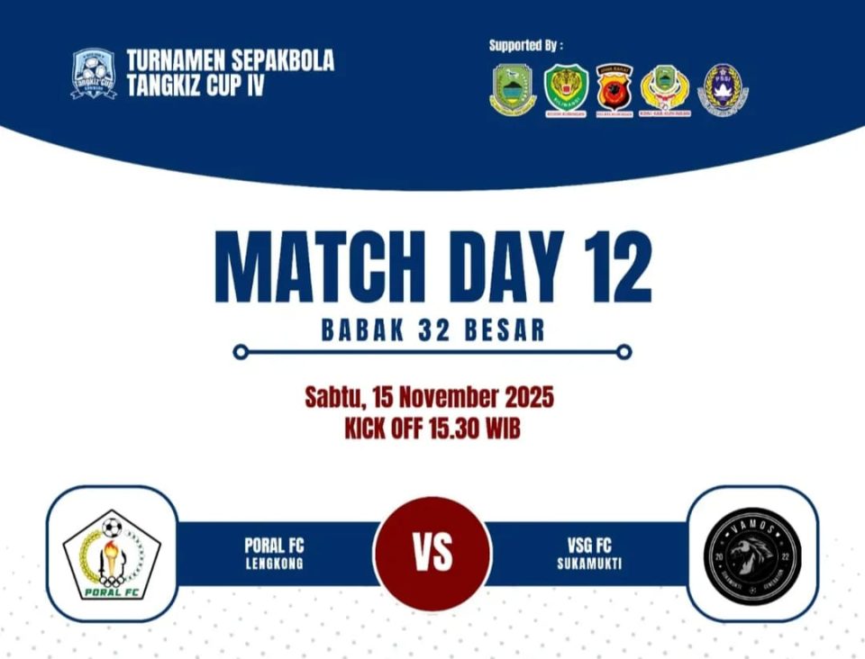 LIPUTAN KUNINGAN- Turnamen Open Sepakbola Tangkiz Cup 2025 memasuki hari ke-12. Pada laga hariSabtu (15/11/2025) bakal mempertemukan Poral Lengkong Vs VSG FC Sukamukti.