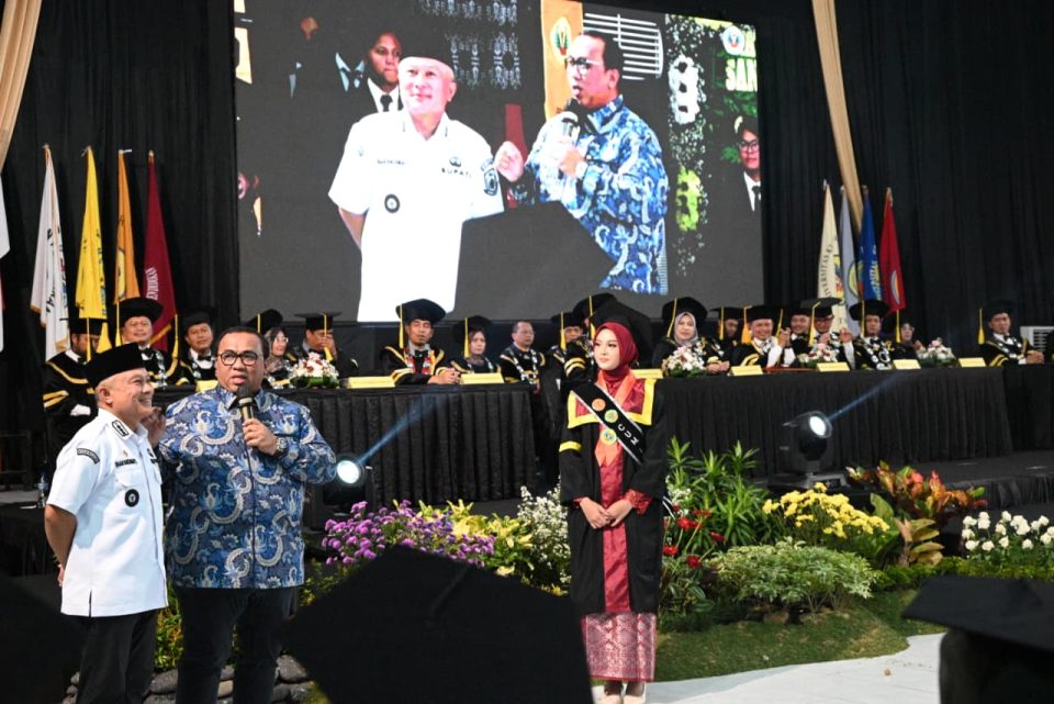 LIPUTAN KUNINGAN- Universitas Kuningan (Uniku) sukses menyelenggarakan Wisuda ke-33 di Gedung Student Center (SC) Iman Hidayat Kampus I, Rabu (19/11/2025). Acara saklar tersebut diikuti oleh 900 wisudawan dan wisudawati dari berbagai program studi yang dibagi menjadi dua sesi. Diawali dengan penampilan seni dari UKM Dapur Sastra (Dapsas) dan Rhineka Sunda.