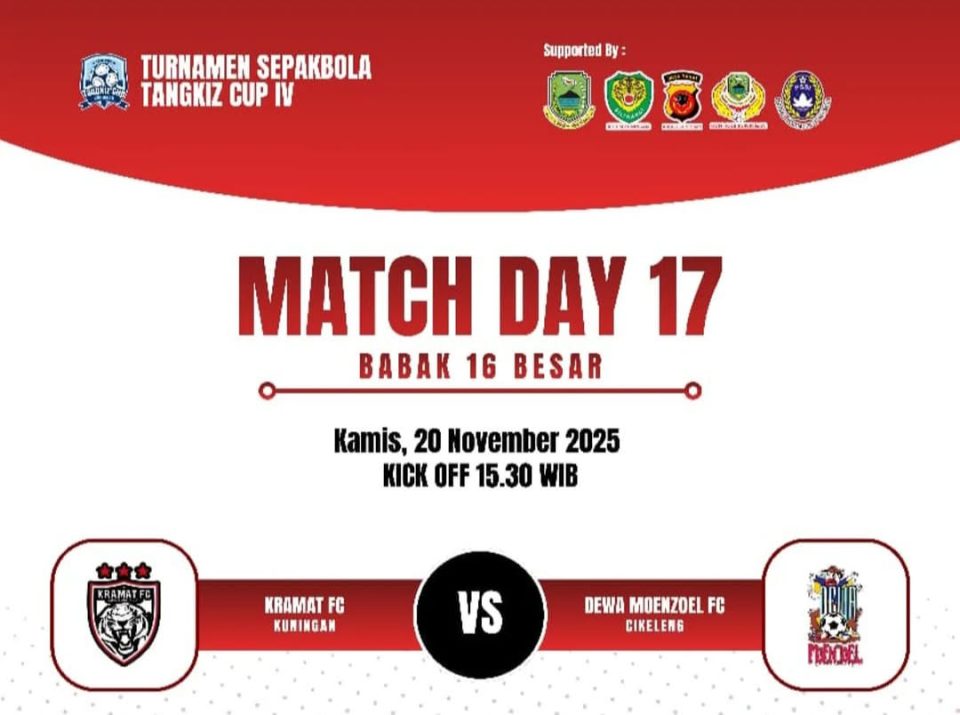 LIPUTAN KUNINGAN-Turnamen Open Sepakbola Tangkiz Cup 2025 memasuki babak 16 besa pada Kamis (20/11/2025). Pada laga Kamis sore pukul 15.30 WIB akan mempertemukan Kramat FC Cihideunghilir melawan Dewa Moenzoel.