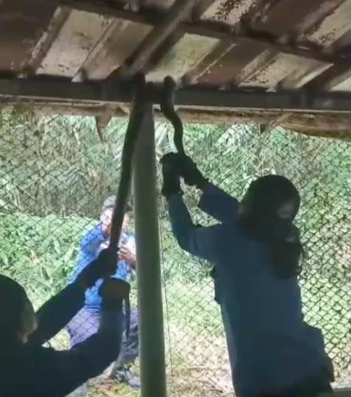 “Kalau tidak dievakuasi secepatnya maka berbahaya, karean bisa memangsa hewan ternak dan juga pegawau yang ada di kandang dan juga warga sekitar,” ujar Kepala UPT Damkar Kuningan Andri Arga Kusumah SE.