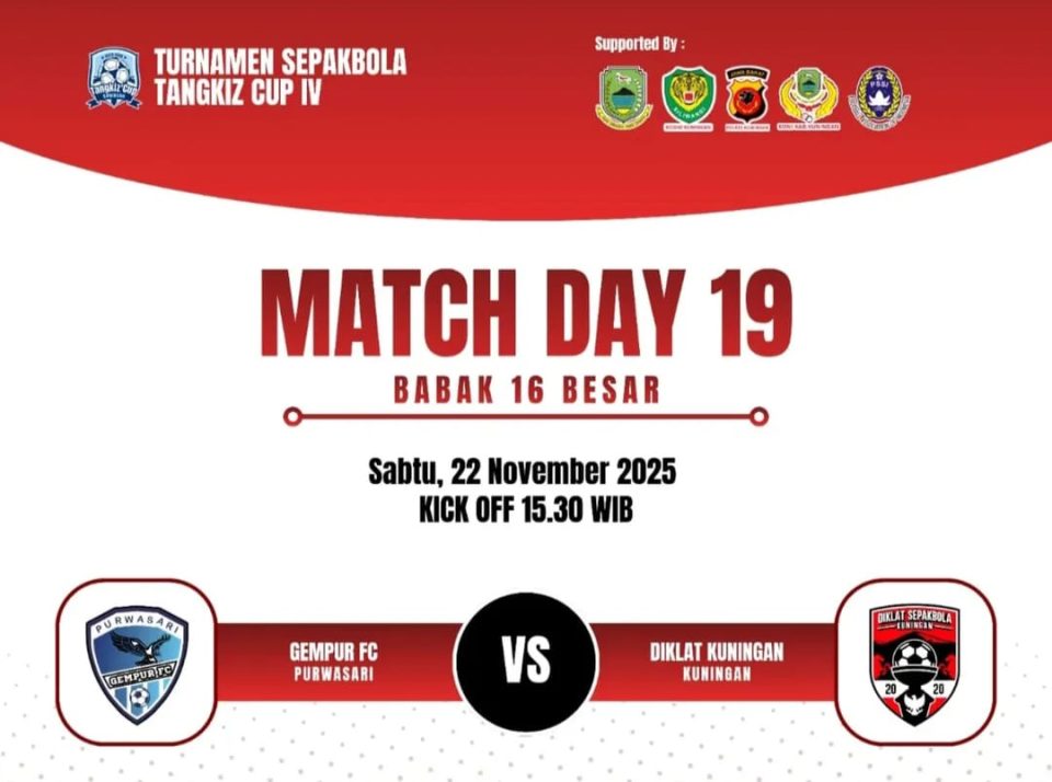 LIPUTAN KUNINGAN-Hari ketiga babak 16 besar Turnamen Open Sepakbola Tangkiz Cup 2025 bakal  menghadirkan laga super seru yakni  Gempur Purwasari Vs Diklat Sepakbola Kuningan . Laga ini akan berlangsung pada pukul 15.30 WIB   di Lapangan Desa Kramatwangi Kecamatan Garawangi.