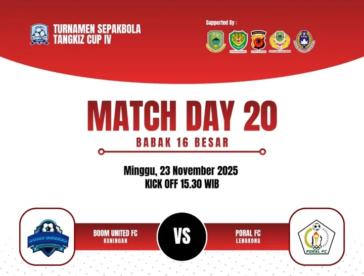 LIPUTAN KUNINGAN –Babak 16 besar Turnamen Open Sepakbola Tangkiz Cup 2025 memasuki hari ke-empat. Pada laga Minggu (23/11/2025) bakal menghadirkan laga super big match antara Boom United Vs Poral Lengkong. Laga ini akan berlangsung pada pukul 15.30 WIB di Lapangan Desa Kramatwangi Kecamatan Garawangi.