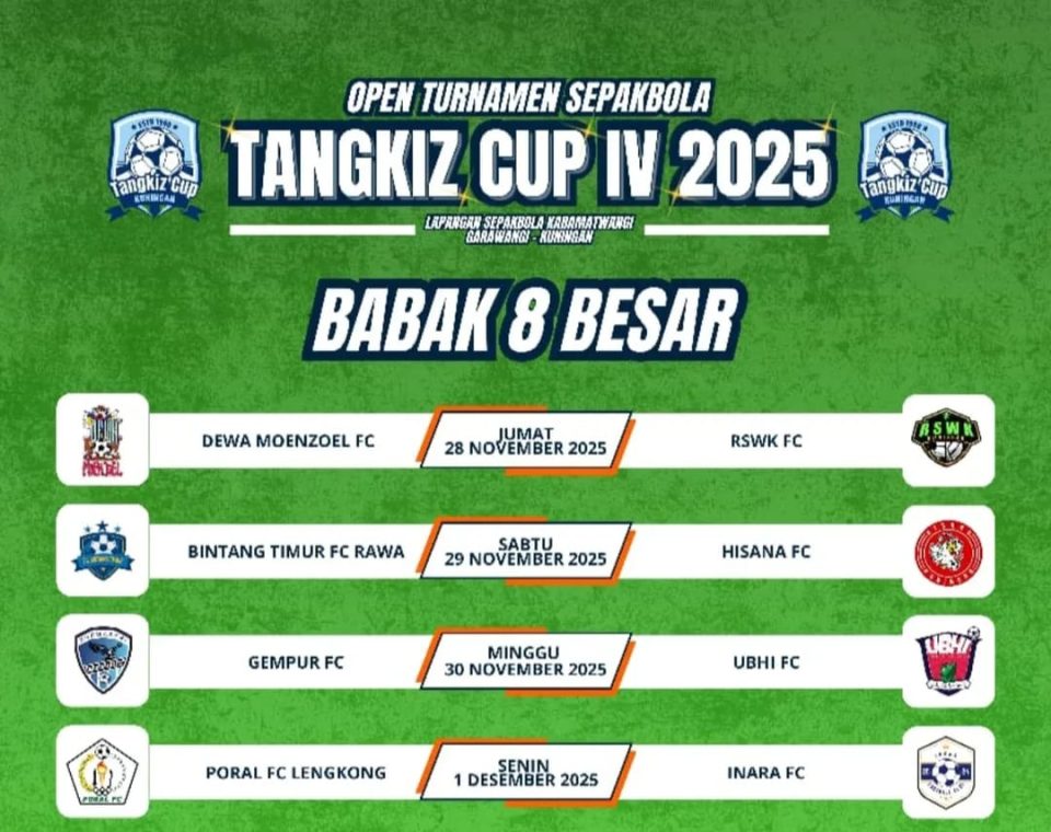 Jadwal Babak 8 Besar Tangkiz Cup 2025, Tim yang Lolos Ada Gempur Purwasari, Bintang Timur, Poral Lengkong, Dewa Moenzoel, RSWK, Inara, UBHI dan Hisana FC