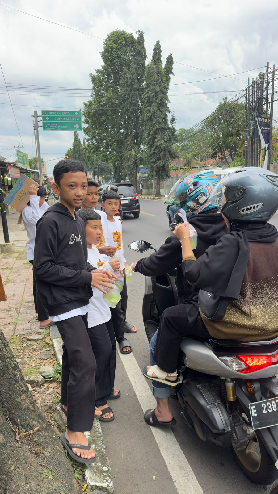 LIPUTAN KUNINGAN –Puluhan Santri Perwakilan dari Pesantren Kilat (Sanlat) Dewan Kemakmuran Masjid (DKM) Al-Ashri Perumahan Alam Asri Kuningan Jawa Barat menggelar kegiatan berbagi takjil bagi para pengguna jalan raya, yang dipusatkan di lokasi Taman Cirendang Kuningan sore hari ini, Sabtu (28/2/2026).