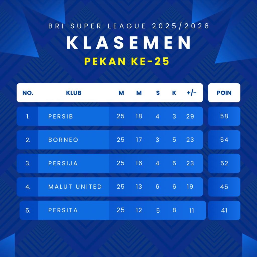 Dengan hasil ini Persib tetap di puncak dengan nilai 58, lalu Borneo menyusul dengan 54 poin. Jarak empat poin dengan sisa 9 membuat peluang kedau tim juara masih terbuka lebar.